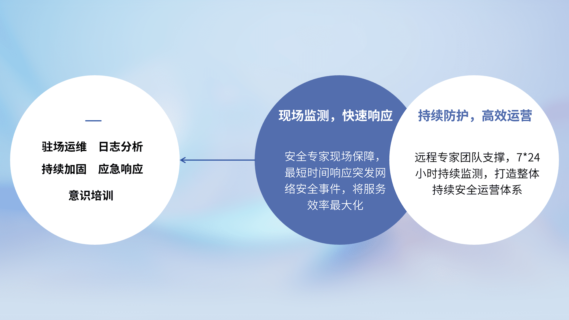 针对客户行业特性,,,,提供专属的一站式安全管理服务,,,帮助客户全面感知网络空间威胁,,,,通过安全专家的线上、、、、线下防护支持,,,,实现风险闭环,,将安全保障常态化,,为客户打造常态化安全运维运营服务。。。。